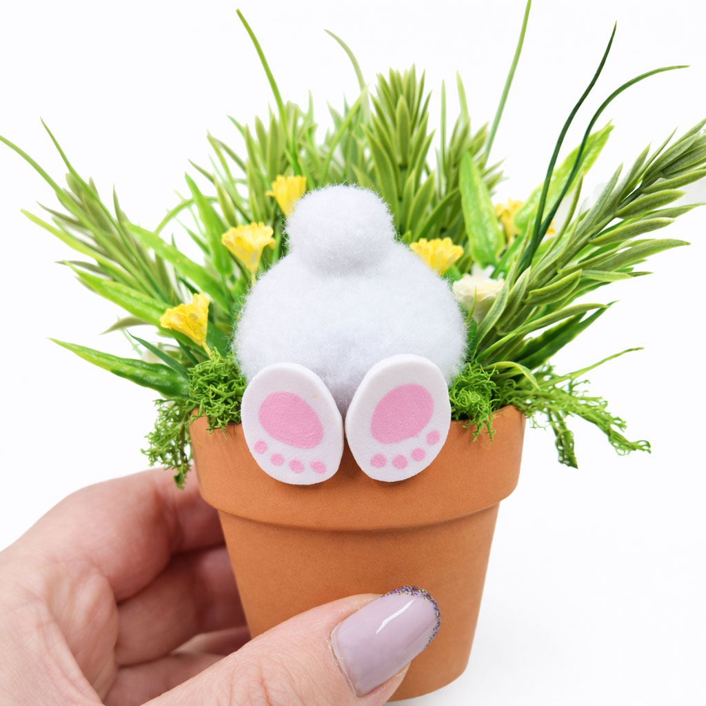 4) Limma fast kaninen och fötterna i krukan, och dekorera med lite grön mössa.