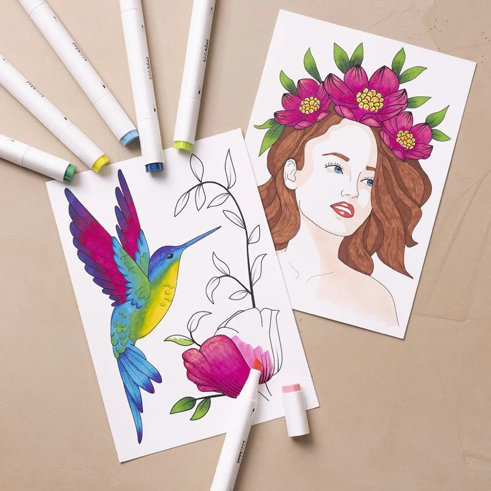 Vårt ritpapper är det perfekta valet för dig som älskar att rita och färglägga med alkoholbaserade tuschpennor. Papperet har en slät yta som garanterar skarpa färger och förhindrar att färgen rinner ut. Det absorberar färgen på ett bra sätt utan att buckla sig eller lösas upp. Vi rekommenderar att du använder ett underlägg när du ritar för att skydda din yta.