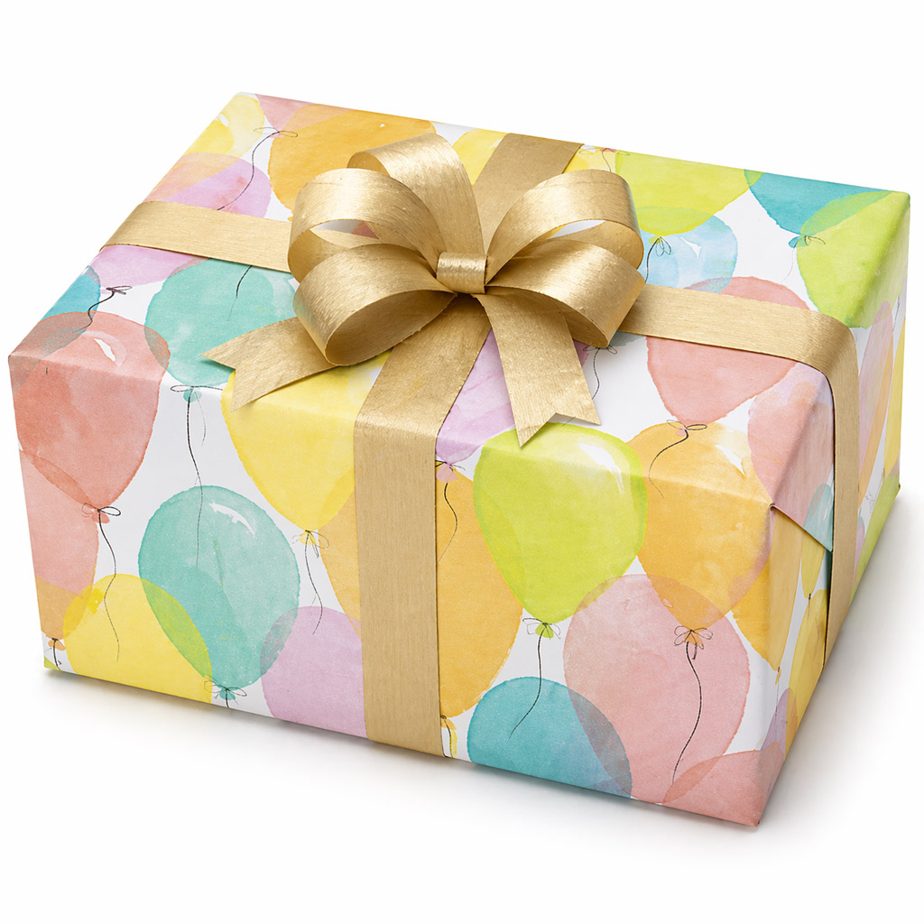 Presentpapper med härliga ballonger i pastellfärger. Perfekt till födelsedagspaket och gåvor. Kombinera med vackra presentband i matchande färger.