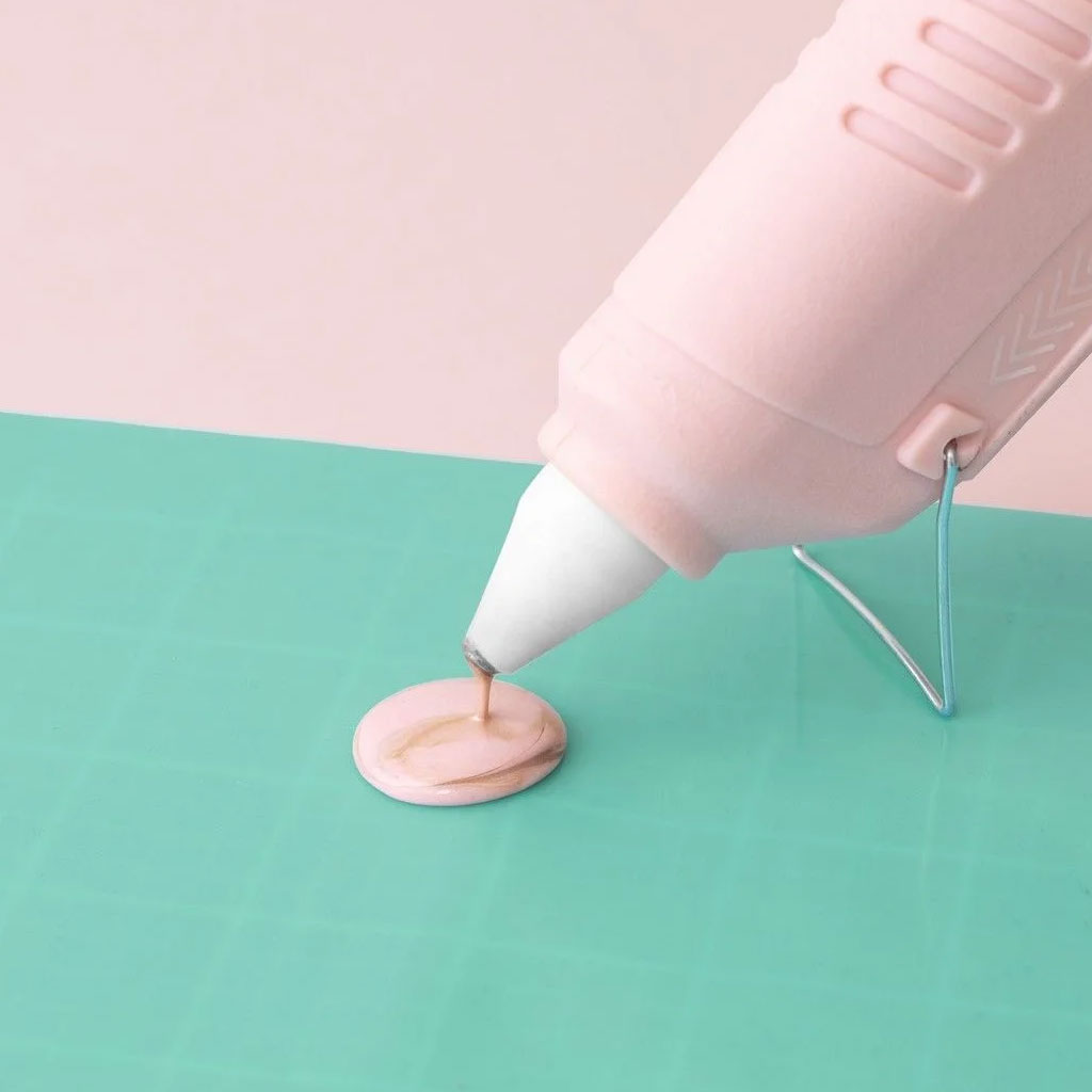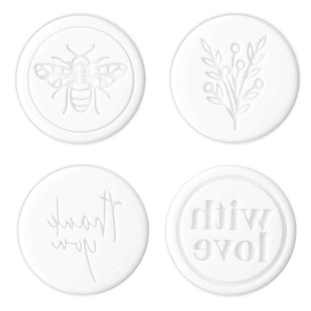 Skapa dekorativa sigill av vax med hjälp av din limpistol. Setet innehåller ett trähandtag till stämplar, nio limstavar med elegant pärlemolyster i rosa, mintgrönt och guld, samt fyra stämplar av silikon. Stämplarna inkluderar fraserna "With love" och "Thank you", samt ett bi och växtmotiv.