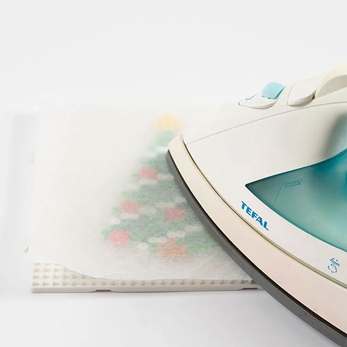Vitfärgad pärlplatta till medium rörpärlor. Pärla fina figurer och mönster, och spara dina verk genom att stryka fast pärlorna. Lägg ett ark bakplåtspapper över pärlmotivet, och använd strykjärnet på låg värme. Stryk försiktigt med lätt tryck så att pärlorna smälter samman. Låt svalna innan du tar bort bakplåtspappret och lyft sedan bort pärldesignen från pärlplattan.