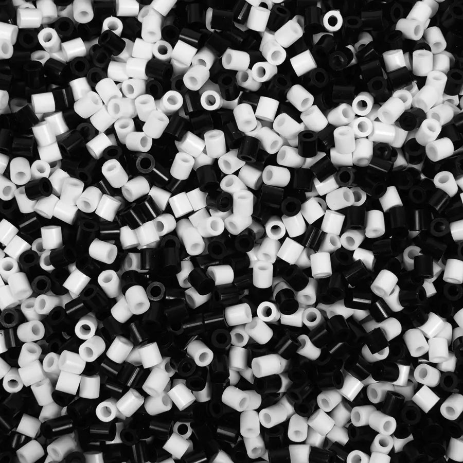 Rörpärlor i en mix av endast svart och vitt. 5000 rörpärlor i en smidig förvaringshink. Pärla mönster på pärlplattor, skapa dekorationer och låt kreativiteten flöda helt fritt.