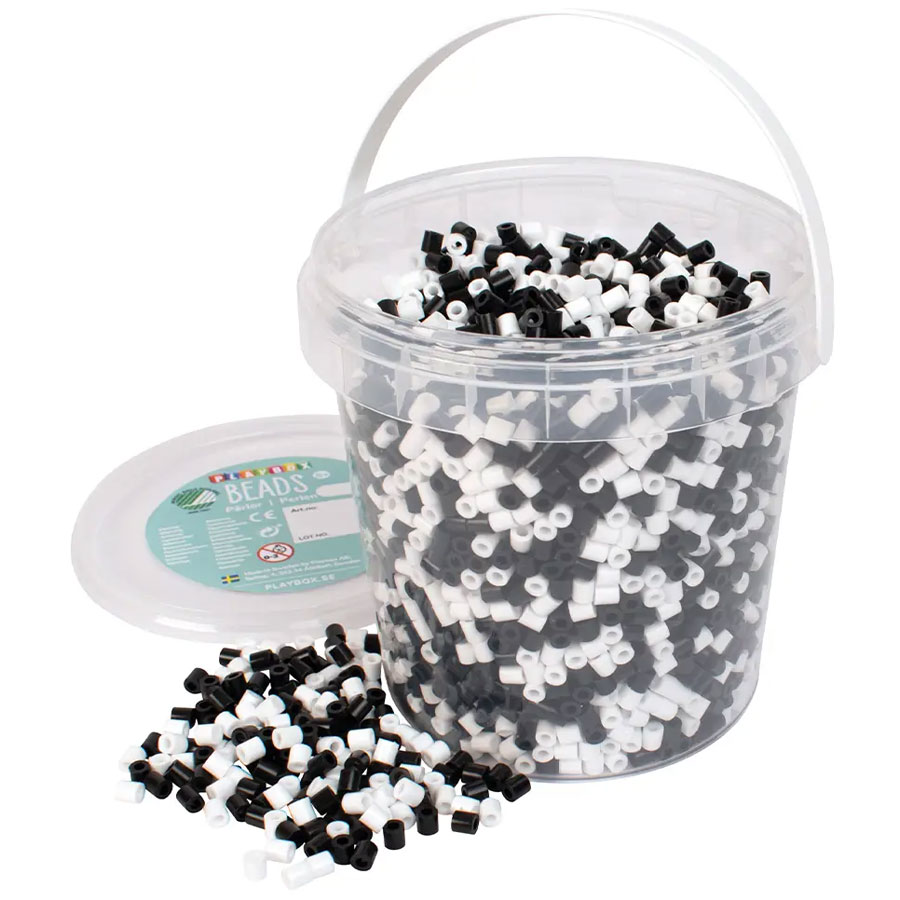 Rörpärlor i Hink - Svart Och Vit - 5000 st - Playbox