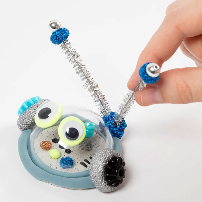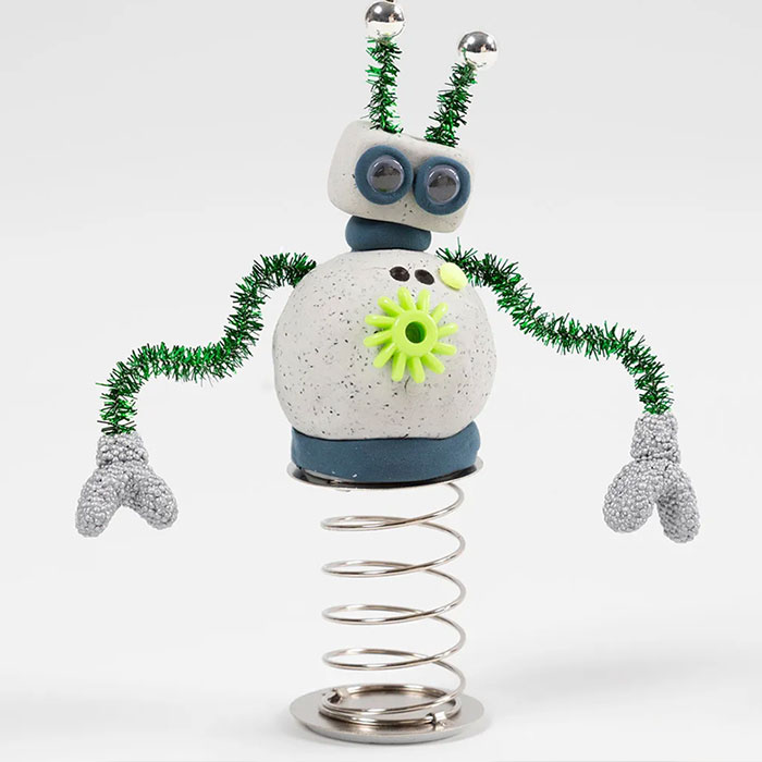Bygg en hel värld av häftiga robotar! Nu kan du enkelt göra egna robotar hemma. Sätt fast fjädrar, antenner och andra roliga detaljer som passar robotarnas personlighet. Du kan även göra roliga detaljer utav Silk Clay-lera och Foam Clay-lera.