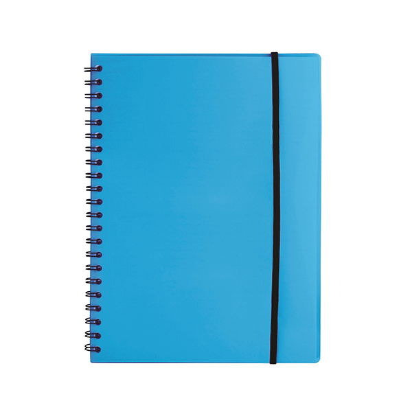 Anteckningsblock från kvalitativa Büngers. Spiralbundet anteckningsblock med omslag i transparent klar PP-Plast och blå fram- och baksida. Blocket innehåller 70 st linjerade sidor.