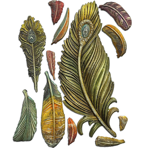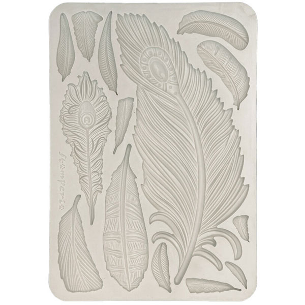 Gedigen och stadig silikonform för gjutning med motiv av fjädrar i olika modeller. Används med fördel tillsammans med Stamperias lufttorkande lättlera; Soft Clay. Du kan också gjuta med betong, resin eller gips och sedan måla med hobbyfärg efter torkning.