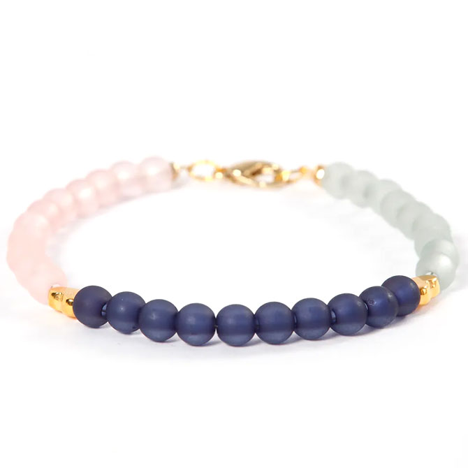 Plastpärlor i en mix av transparenta och helfärgade, samt förgyllda ledpärlor, är trädda på en smyckewire och avslutas med förgyllda smyckedelar från vårt populära startset.
