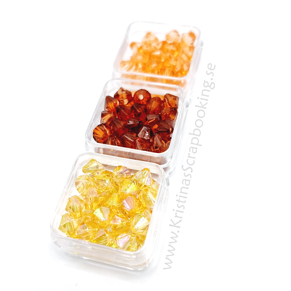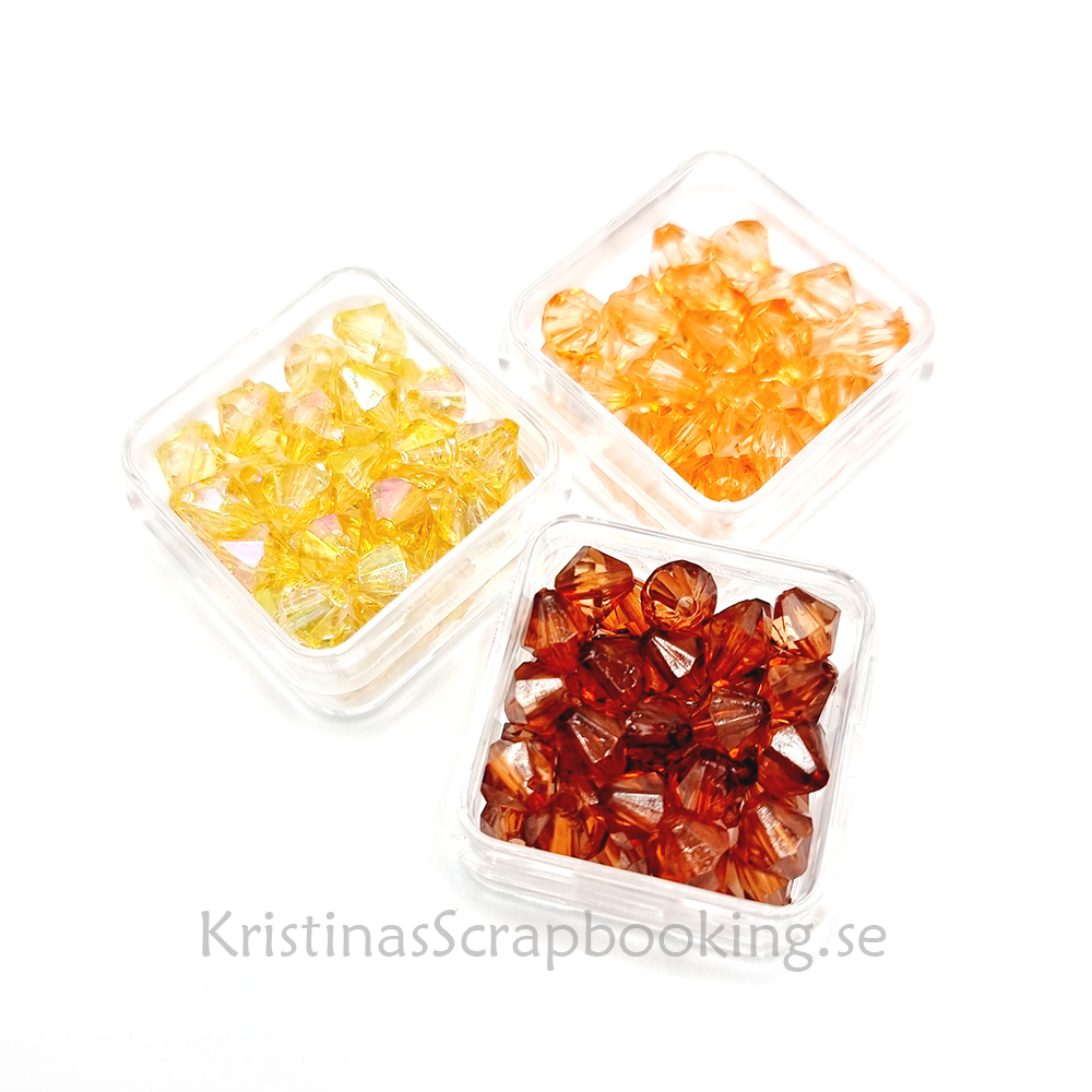 Akrylpärlor med vacker glans och finish. De diamantformade pärlorna gör sig snygga till bl.a halsband, armband och örhängen i tre matchande färger. För all sorts smyckestillverkning och hemma-pyssel.