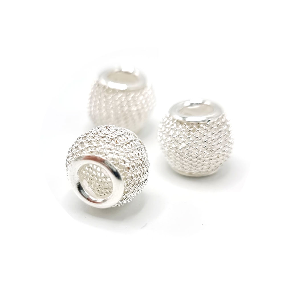 Pärlor i metall med extra stora hål. Unik design av tunt nät av metall. Kombineras med andra pärlor för att skapa armband, halsband och andra smycken.