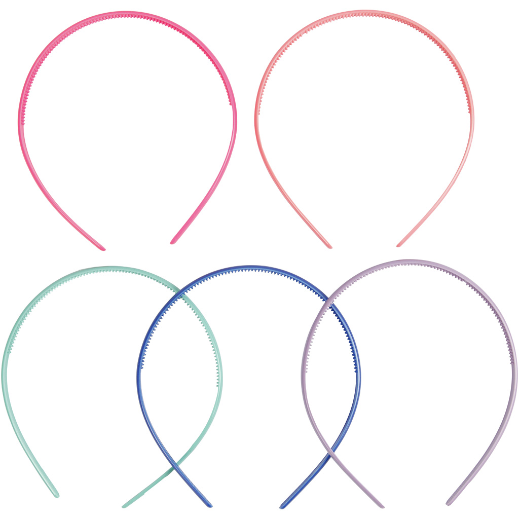 Smala diadem i mixade färger av kvalitativ plast.