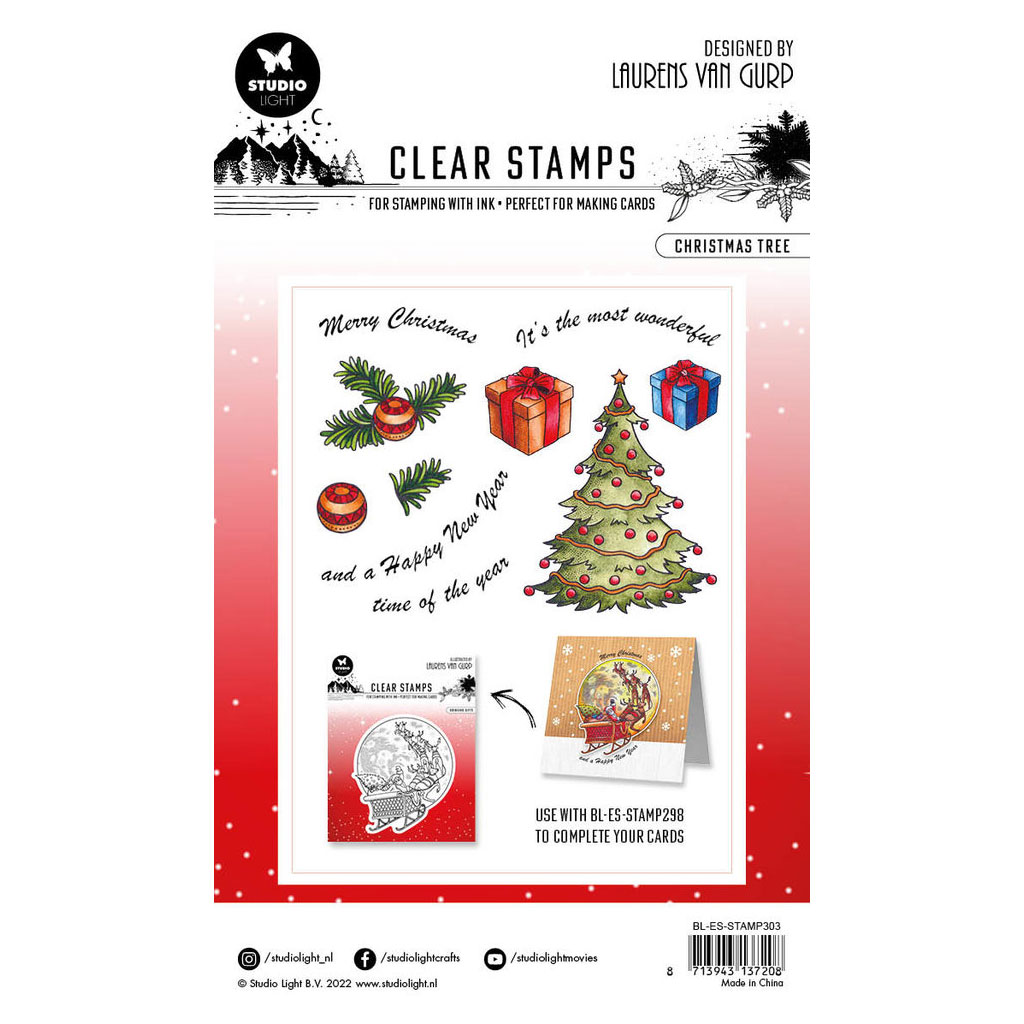 Stämplar från Studio Light med julmotiv. Perfekt till handgjorda julkort, scrapbooking, journaling, mixed media och julpyssel. Transparenta stämplar av högkvalitativ silikon. Använd akrylblock eller stämpelpress och stämpla med valfri stämpelfärg. Färglägg motiven med dina favoritpennor!