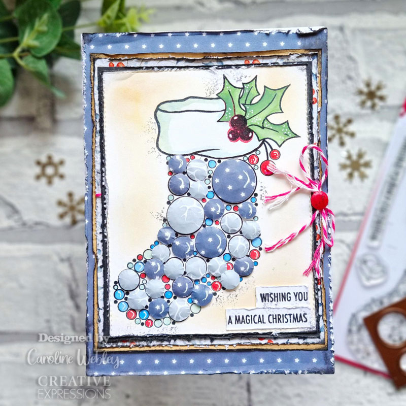 Stämplar med julmotiv från engelska Woodware. Denna stämpel används tillsammans med runda dies, se artikel CEDJG003. Stansa ut papperscirklar och montera på din stämpel.