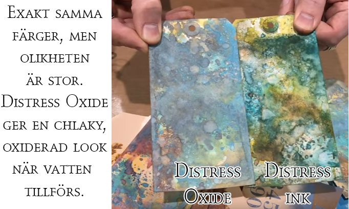 Perfekt till mixed media, tags, journaling, scrapbooking m.m. Se gärna filmen med Tilm Holtz som visar mer om Distress Oxide.