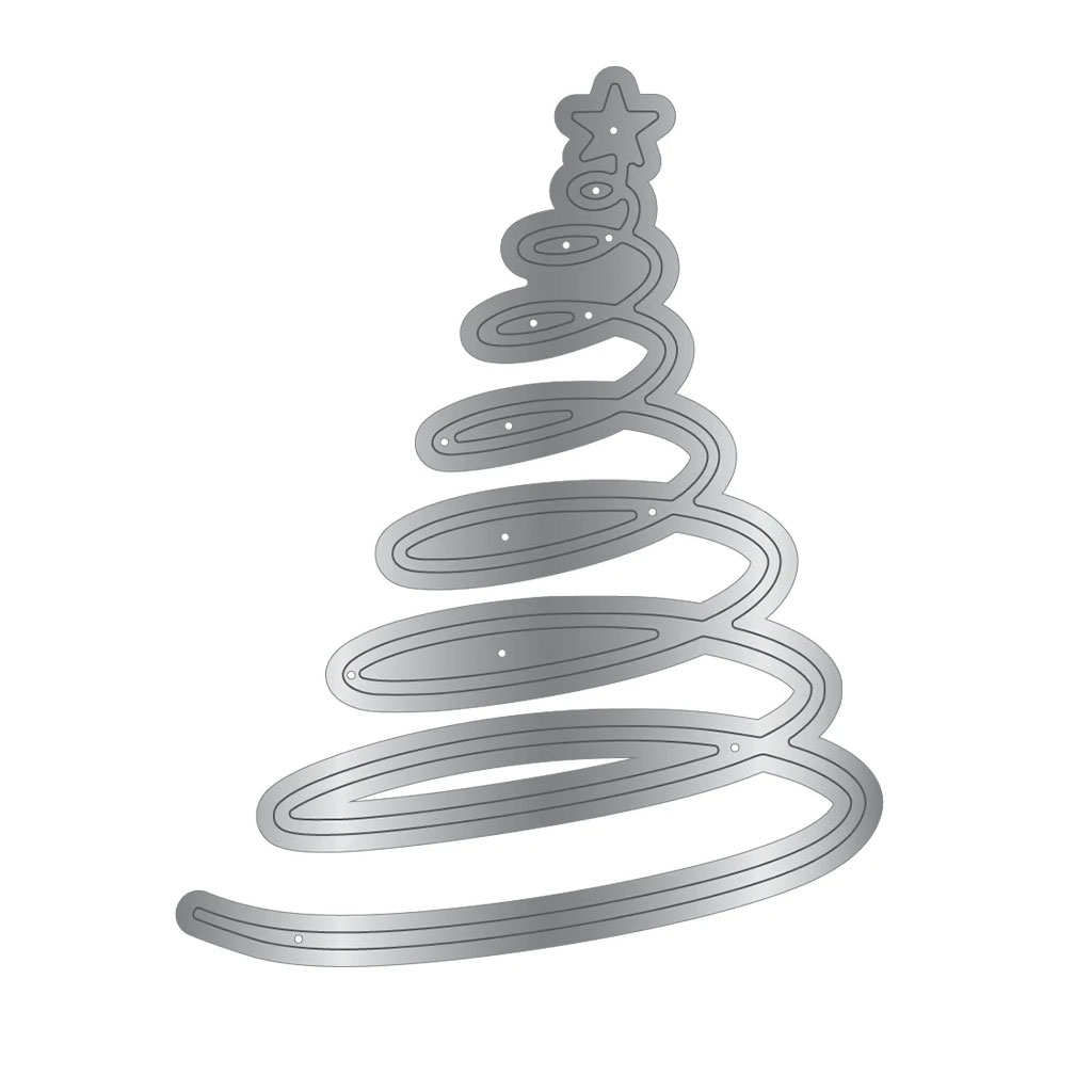 Metallstans med motiv av en stjärna vars svans bildar en spiral i form av en julgran. Perfekt för att dekorera handgjorda julkort, etiketter och presentaskar med ett elegant och detaljrikt uttryck som inte kan uppnås med sax eller kniv. Denna die fungerar i flera populära stansmaskiner och blir ett vackert komplement till dina julprojekt.