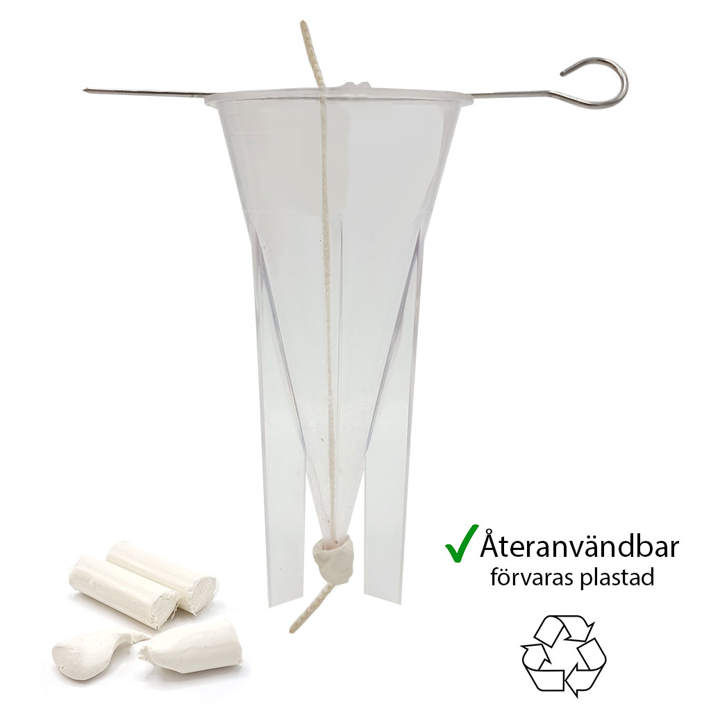 Tätningspasta till ljusformar för att täta vid öppningen för veken. Används främst till plastformar, för att förhindra läckage. Knåda väl och tillför handvärme för att forma pastan runt botten på formen. Låt pastan sitta kvar medan ljuset härdar. Plocka sedan bort och förvara i tättslutande plast. Kan återanvändas om och om igen.