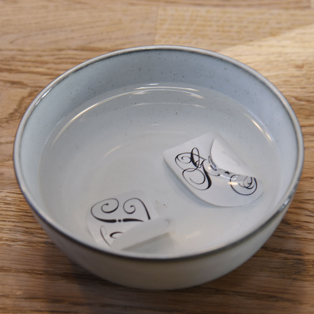 3) Blöt sedan bilden i ljummet vatten, tills bilden lossnat från pappret.