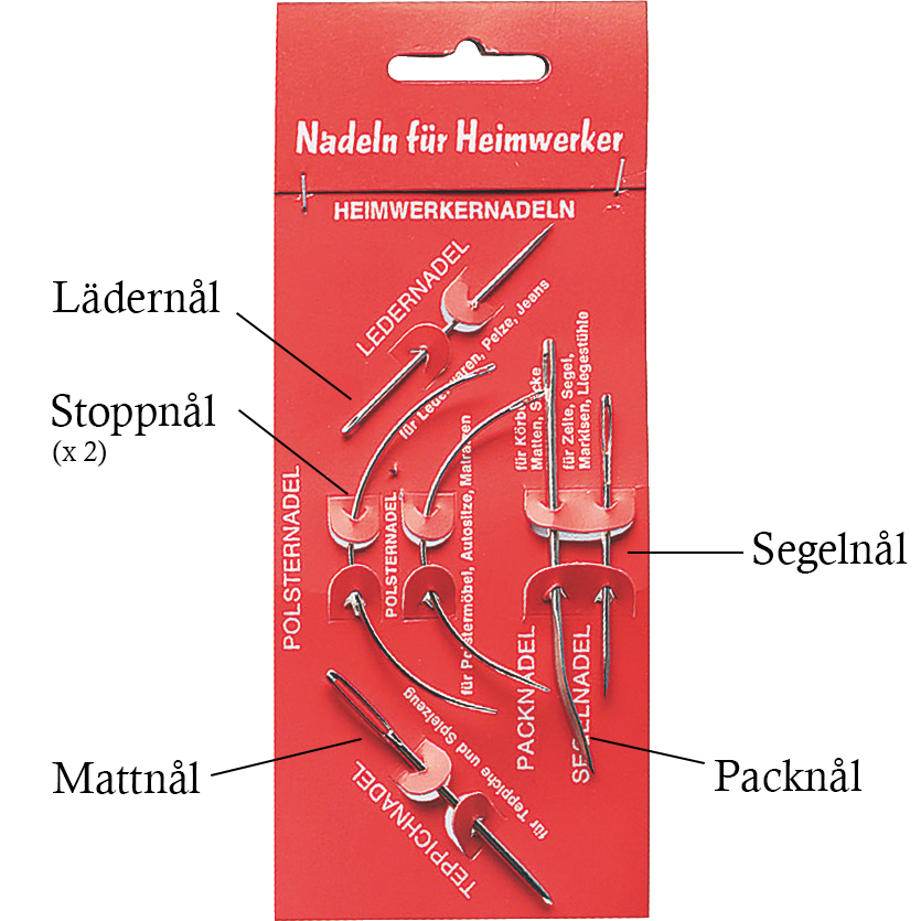 Packnål : passar till korgar, säckar och grövre vävda material.