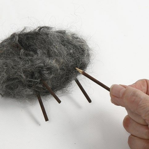 3. Ull filtas fast på kroppen med hjälp av en filtnål. Detta görs genom att arbeta med nålen många gånger i ullen på föremålet tills ullen sitter fast.